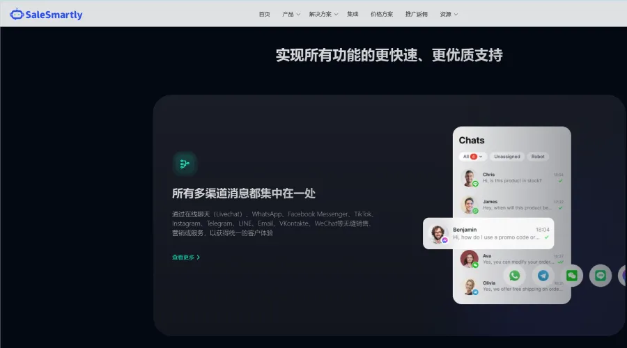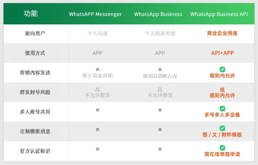 - 使用 自动分配的付费工具,类似B2B平台的分配效果。实现主账号接待,手动或自动把客户无感分配给不同销售员接待。目前了解到的工具有:WhatsApp Business API,salesmartly